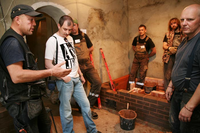 Особые слова благодарности Александру Климентьеву, который грамотно руководил нашей бригадой и под чьим руководством рождалась самая большая печь на этом семинаре, превосходящая своих «сестер» почти вдвое. Ни секунды не колеблясь он принимал решения по изменению конструктива печи в ту или иную строну (печь строилась не по готовым порядовкам, а импровизировалась на месте) в зависимости от поставленных задач. На все вопросы всегда был готов аргументированный ответ, причем приправленный острой шуткой. Работать с ним было одно удовольствие.