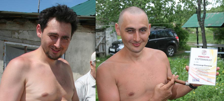 лично подтверждаю это не фотошоп, участник семинара Александр Погосов во время семинара "потерял волосы", но приобрел - дорогую сигару, шикарный автомобиль, подтянул фигуру, получил не сходящуюся улыбку Джеймса Бонда до следующего семинара и внимание- самое дорогое - драгоценный Сертификат " Правильные Печи" с уникальным персональным