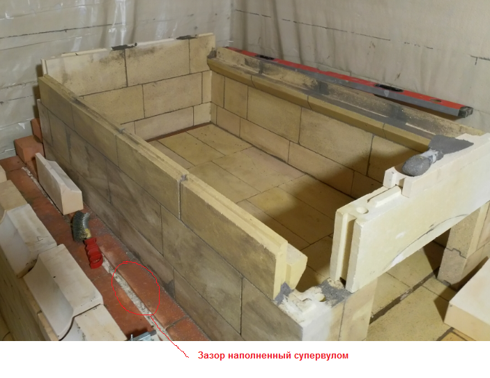 Зазор начинается уже на уровне пода, см. фото. Расстояние между сводом и уголком около 5 см. Т.е. получилась реально 2-х контурная конструкция, внешний контур и внутренний живут каждый своей жизнью.