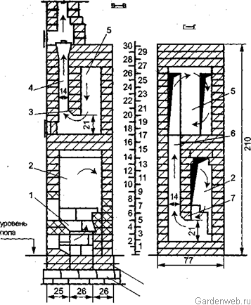 Прошу пардону, но не могли бы вы, все же, нарисовать стрелочками, на сечениях печи 77х77, в исполнении топливника для дров, направления векторов тяги?
