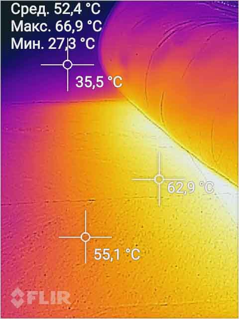Евгений? А нет ли фото печи с убранным одеялом в ИК-диапазоне. Хочется посмотреть как талькомагнезитовое покрытие (у него высокая теплопроводность) влияет на выравнивание температур на лежанке в горизонтальной плоскости?