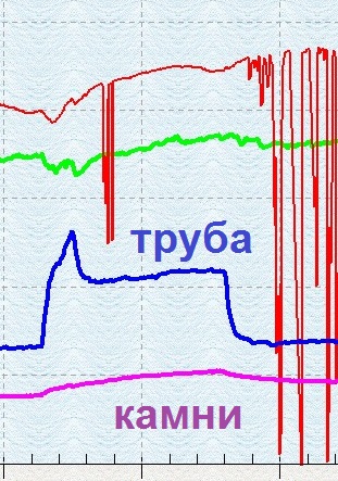 Графики Трубы (цвет синий) и Каменки (цвет магента). Время (ось абсцисс) для обоих графиков общее, ось ординат у каждого своя |