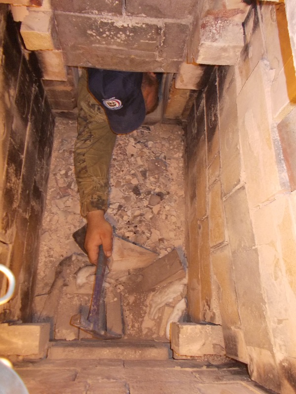 Алексей я в Чехове показывал -трёхслойная конструкция сердечника в районе топки. Наружная часть,весовая, и футеровка топки.Выше на фото -пять лет назад сделано. Развалился(выкрошился) только рассекатель(катализатор). И если не было распроеделения весовых нагрузок -вывалилась бы вся каменная закладка. А рассекатель стоит на футеровке.Остальное всё целое. Ну ещё дырочки вторички вместо треугольных стали круглыми и оплавленными.