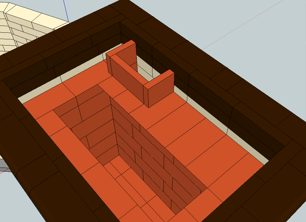 Конечно я понимаю, что при проектировке комплекса, ввиду осутствия спец.знаний и опыта допустил ошибки, которые теперь доставляют проблемы и тормозят работу. Когда делал 3D модель хотел, чтобы стенки мангала были симитричными в кирпич и добавлдять дыможоды с бокову, пусть с небольшим выступом в пол кирпича не захотел. О чем теперь жалею.