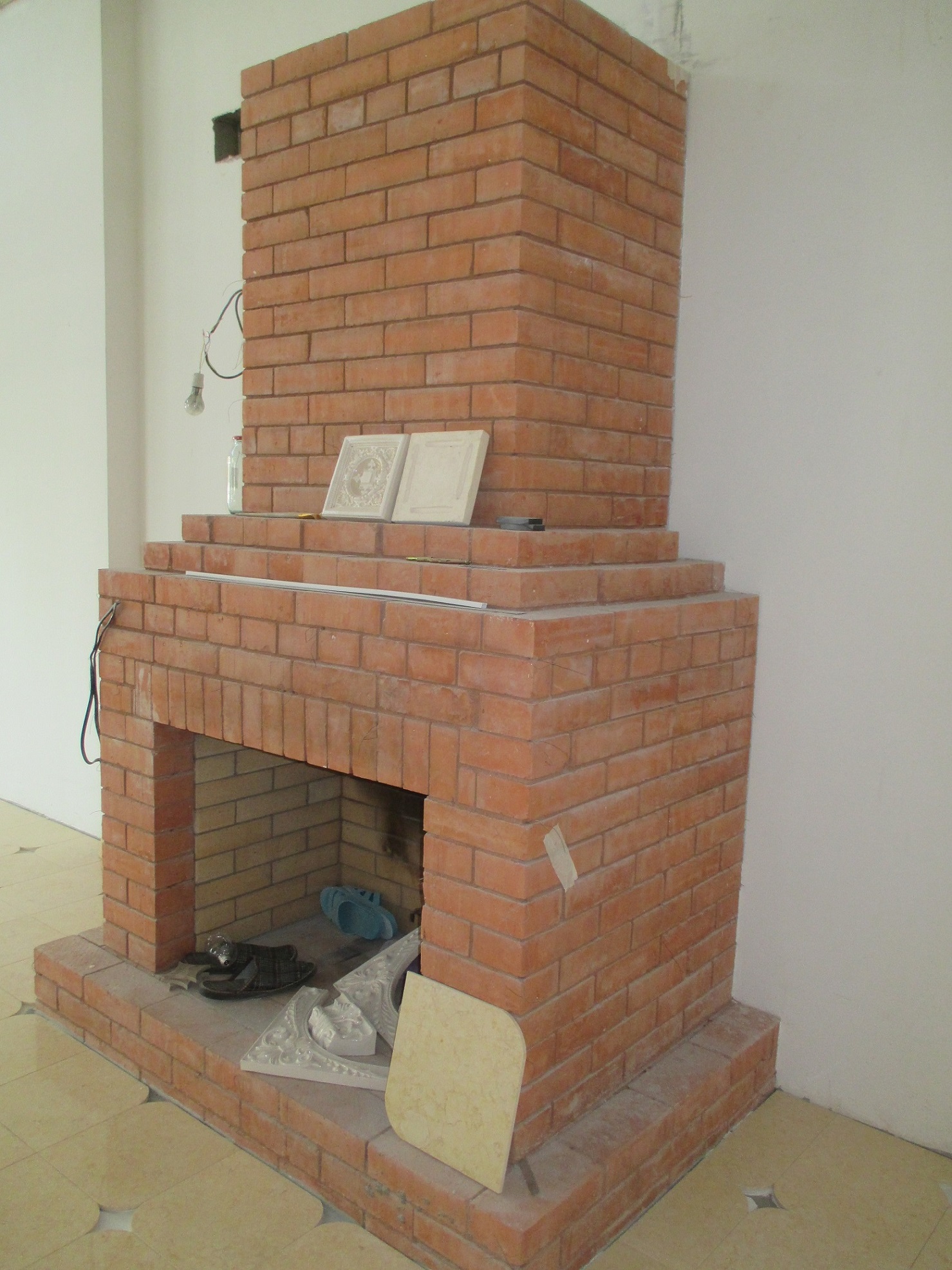 На этих фото внутрянка уже лучше. Можно ещё лучше сделать -не делать внутри перегородки из красного кирпича. А полностью из шамота сердечник и не перевязывать с наружными стенками.