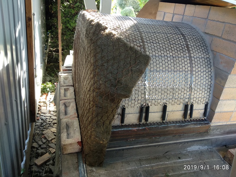 по совету форумчанина ( забыл его ник, на R как то ) стянул топку в бандаж. с торца закрепил сеткой вату для утепления.