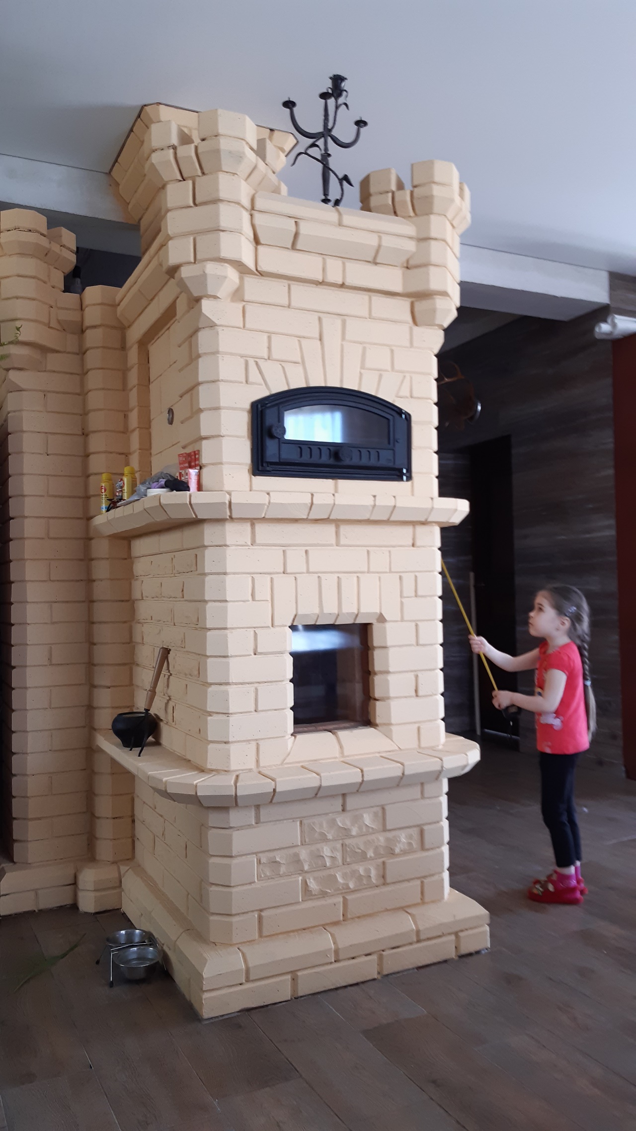 Когда обдумывали с супругой дизайн помещения, решили что будет Прованс. Прованс- это Французская деревня, Франция- это замки на холмах. Отсюда и общий вид печи.