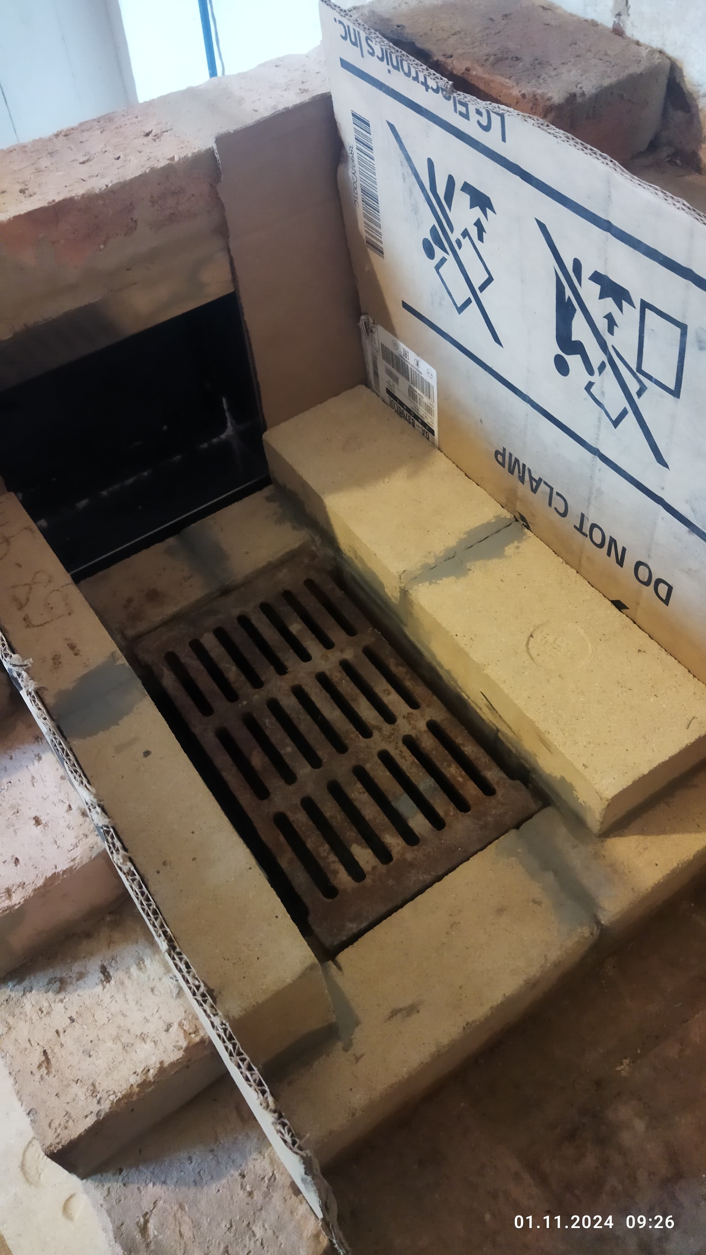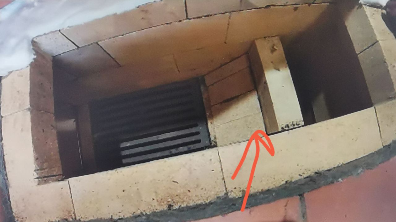 Вот отверстие, Вторым рядом будет шамот, боковые кирпичи справа будут убираться.