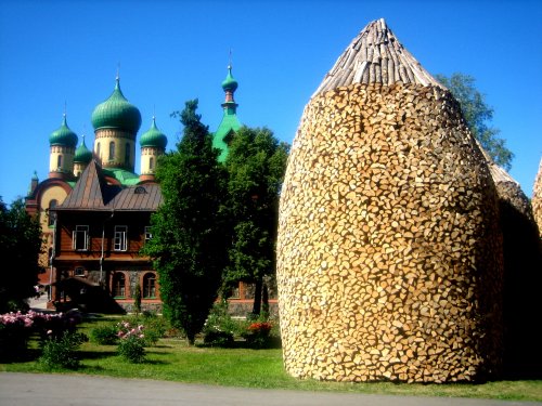 Стога дров в Эстонии. Пюхтинский монастырь.