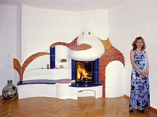 На фотографии Ofen-94.jpg используется каминная чугунная вставка, над которой вверху есть выходные отверстия для тёплого воздуха. Сидение в этом камине не может быть тёплым, хотя лучистое тепло от чугунной топки внутри этой конструкции всё же распространяется, но за разумное время такую массу кирпича оно не в состоянии нагреть хотя бы до температуры +30°С при комнатной температуре +22°С.