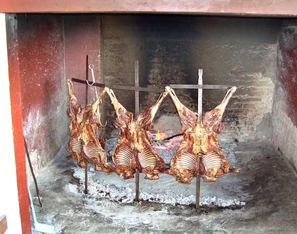 Вот и на Вашей фото Владимир..... мясо жарится на деревянном вертеле ....(металлический нельзя)... что за зверь ....?