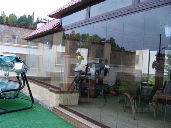 Лично мне нравится такой вариант остекления-безрамный. Правда тепла в таком случаи не удержать.