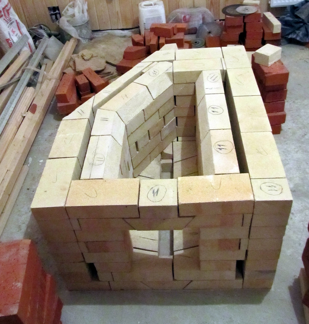 Начал собирать на сухую, на месте пилить кирпич нет возможности. Потом перевозка и кладка.