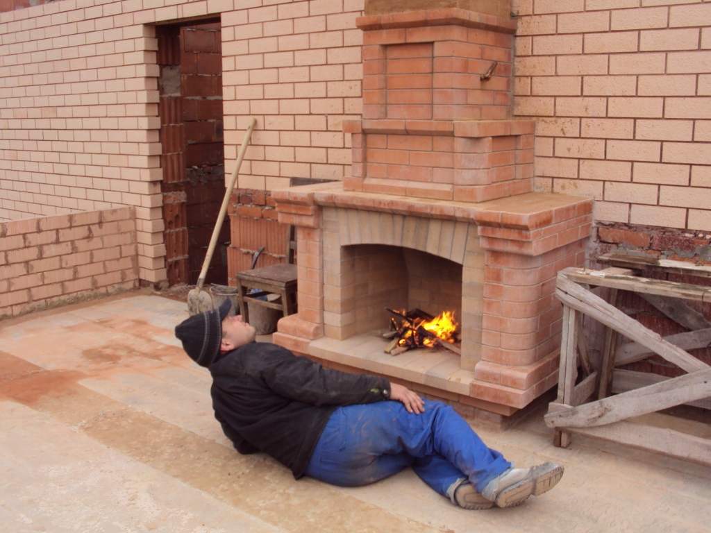 В данный момент заканчиваю кладку трубы дымохода и дальше сушка, перед дальнейшей отделкой..