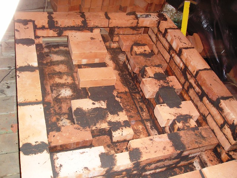 Вот лежанка от варочно-отопительной печи. Ход газов туда по одной стороне, обратно - по другой - в трубу. Для увеличения ширины лежанки средний ряд с ухищрениями. 2 ряда от пола сплошных, 3-4 ряда - канал, два - перекрытие.
