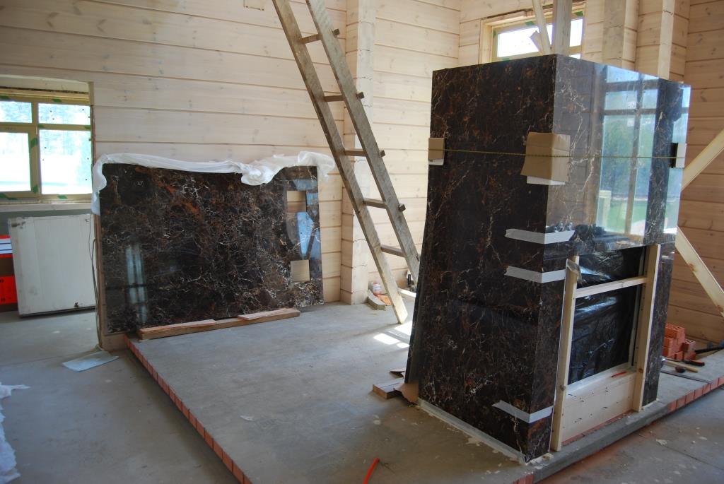 Начинаем монтировать камушек... конструкция из слэбов толщ. 20 мм., самонесущая... после замастичивания стыков, станоится единым целым.