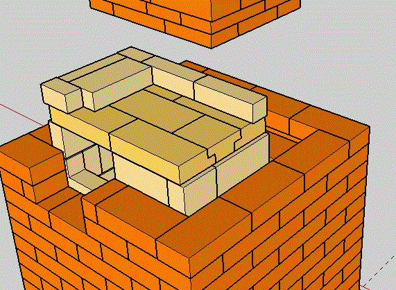1. Поднял на 3мм ряды шамота, последний ряд перекрытия упирается в ряд перекрытия из красного кирпича.... как вариант думаю использовать ША 9 на перекрытие в итоге ниже на ряд получается.