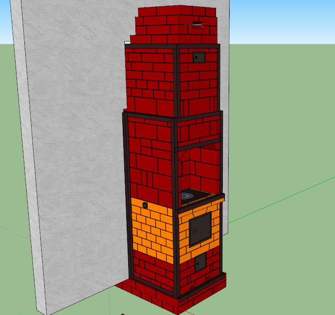 Белым это печка. Трубу запланировал через второй этаж и крышу, но думаю вовсе снаружи дома сделать.