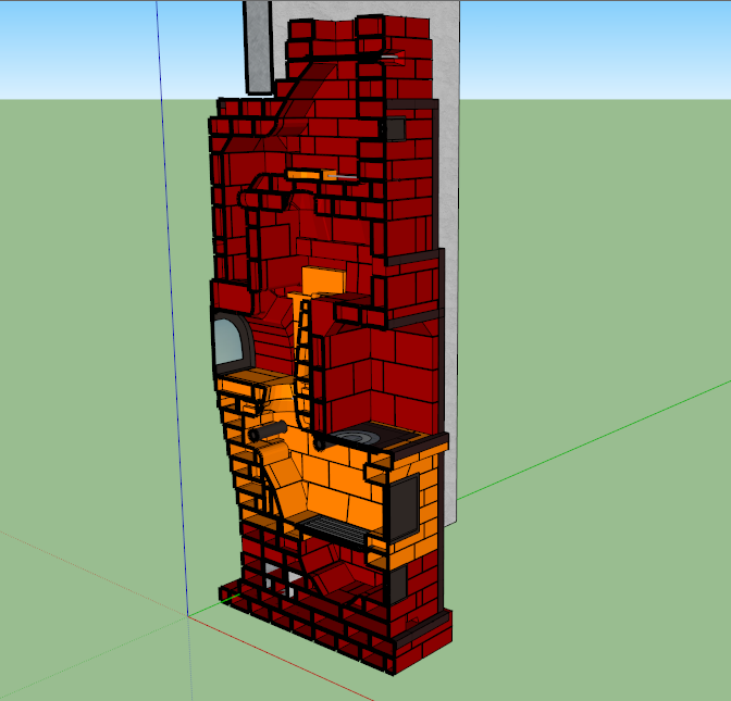 Но все дело в том, что хотелось бы иметь универсальную кирпичную печь: одна сторона камин на дровах в зал, вторая с плитой для варки в кухню.