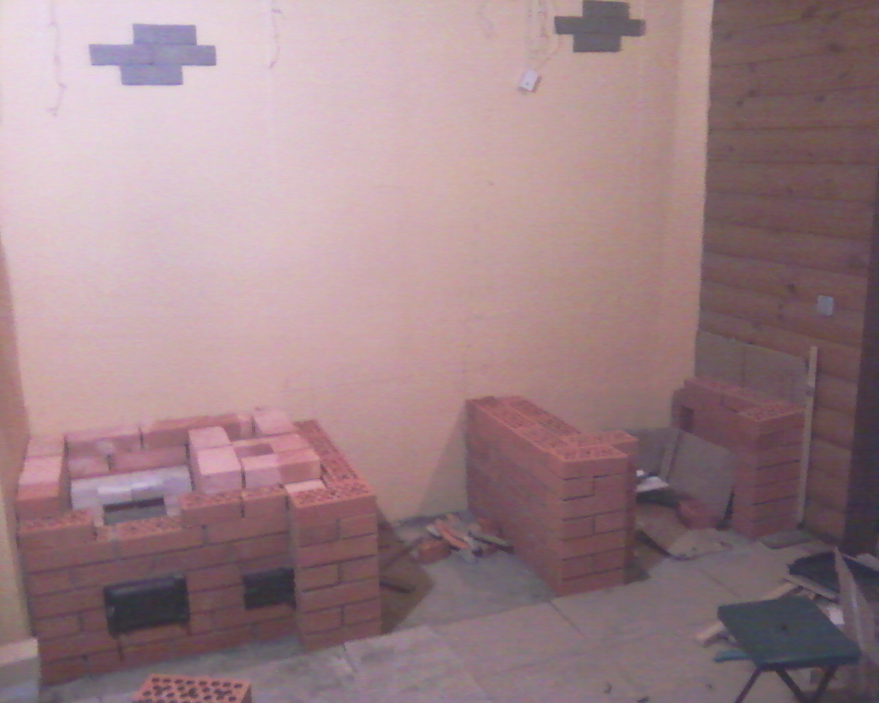 В плите пустотелый экранирован от топки баз картоном. В печи над аркой шестка пустотелый заполнен ГПС. Плюс по внутренней поверхности этой стенки будет подсасываться холодный воздух. Будем надеяться, что никуда не денется. Там его всего полтора ряда. Дальше полнотелый будет.
