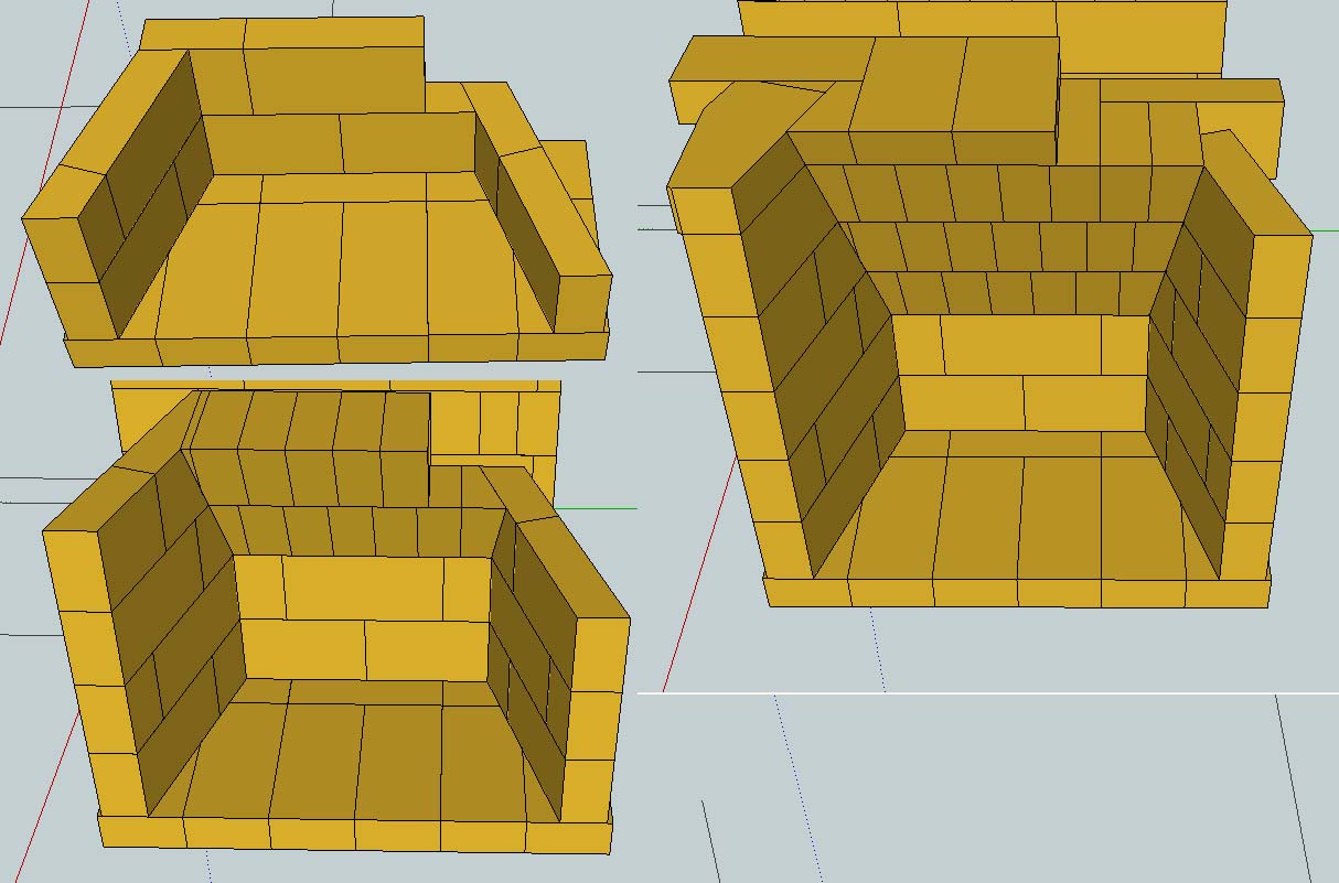 В данном случае разумнее класть топку плашмя Места хватит . Задняя стенка топки запиливается под углом для образования наклона стенки и , в дальнейшем , зуба .