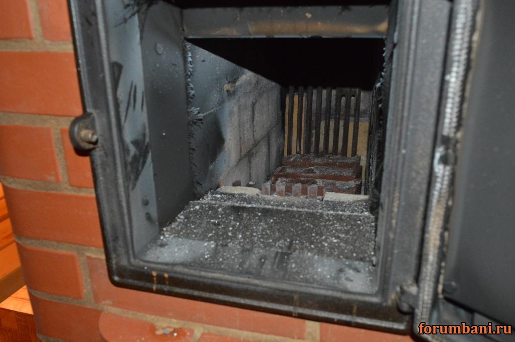 после первой топки и НЕ нагрева камней до свечения разобрал каменку-убрал камни- как оказалось камни чистые сажа на дверном проеме на дверке каменки и вверху каменки на перекрышке.