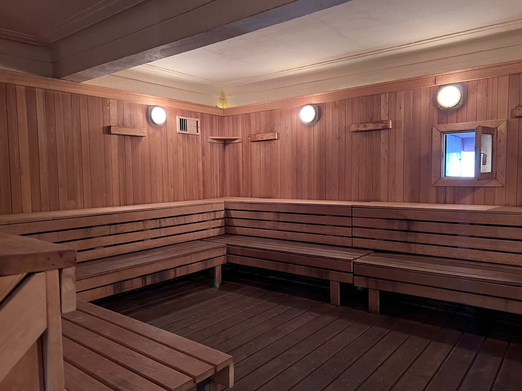 На 3-м заходе парился стоя на топчане, только сначала ближе к лестнице, а потом встал ближе к углу.