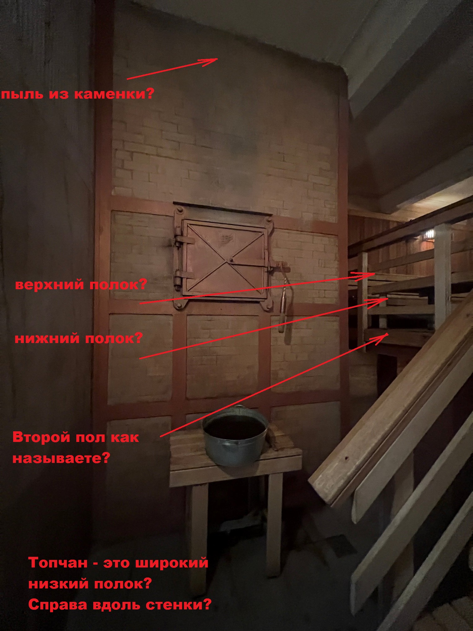 | А это фото из Воронцовских, чтобы посмотрели где лестница, где топчан, где печь, где полок. |