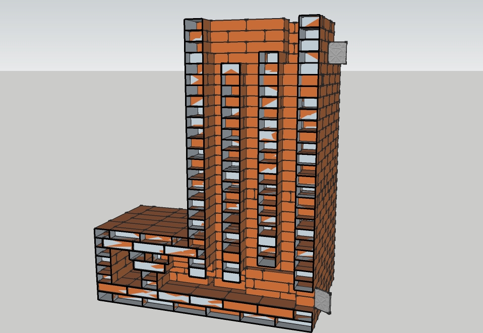 изменил длину лежанки и перекрытия лежанки и корпуса, на один ряд уменьшил высоту опускного канала, и еще кое-чего по мелочам. Правда с шамотом ничего еще не думал, так что в этих рядах полное безобразие.