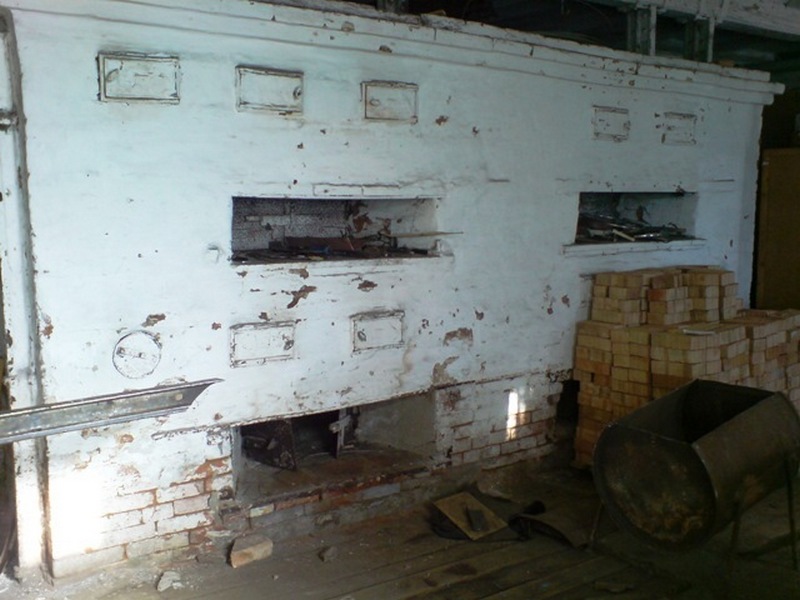 Старая пекарня,законсервированная на случай войны.Там две такие печи по 4 хлебных камер каждая. По потолку шла труба водопровода которая сгнила и размыла одну из печей(сколько текла,год-два?-не известо) 90е годы,один пекарь решил взять в аренду и печь хлеб.