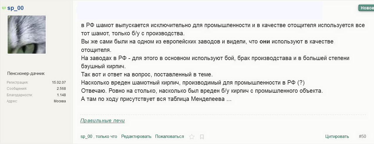 вопрос вредности шамотного кирпича в бытовом печестроение возникает эпизодически