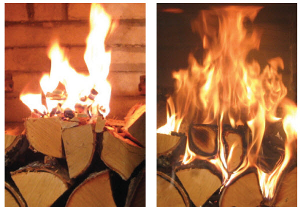 В вашем же варианте получилось то, что провалившись ушли с верхних рядов упали вниз и закладка сгорела быстрее, поскольку горела вся разово со всех сторон, в отличие от верхнего или нижнего, когда горит в направление или от низа вверх или наоборот.