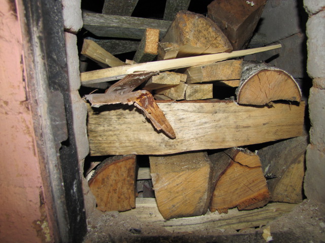 1. Отпадает последовательная закладка дров в топку - бумага - березовая кора - щепки - тонкие поленья - основные поленья.