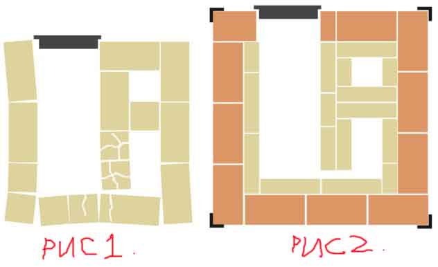 Почему во втором варианте применена кладка огнеупорного кирпича на ребро вместо кладки на плашку?
