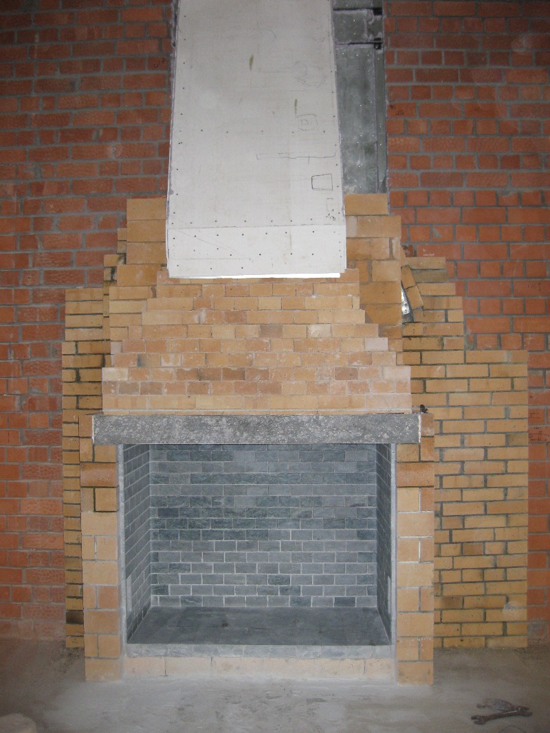 Только в моём камине,в отличии от Ваших труба кирпичная(категорическое требование заказчика) и портал пошире.Поэтому были сомнения,выдержит ли перемычка.