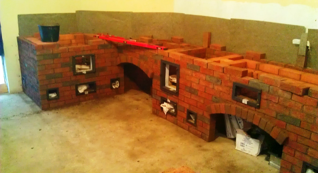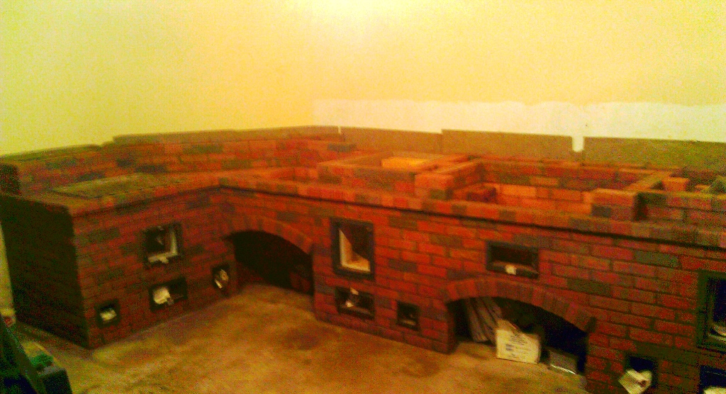 Похоже от самых дальних очагов погонят каналы над столешницами- там я вижу зачем то стены в полтора кирпича.