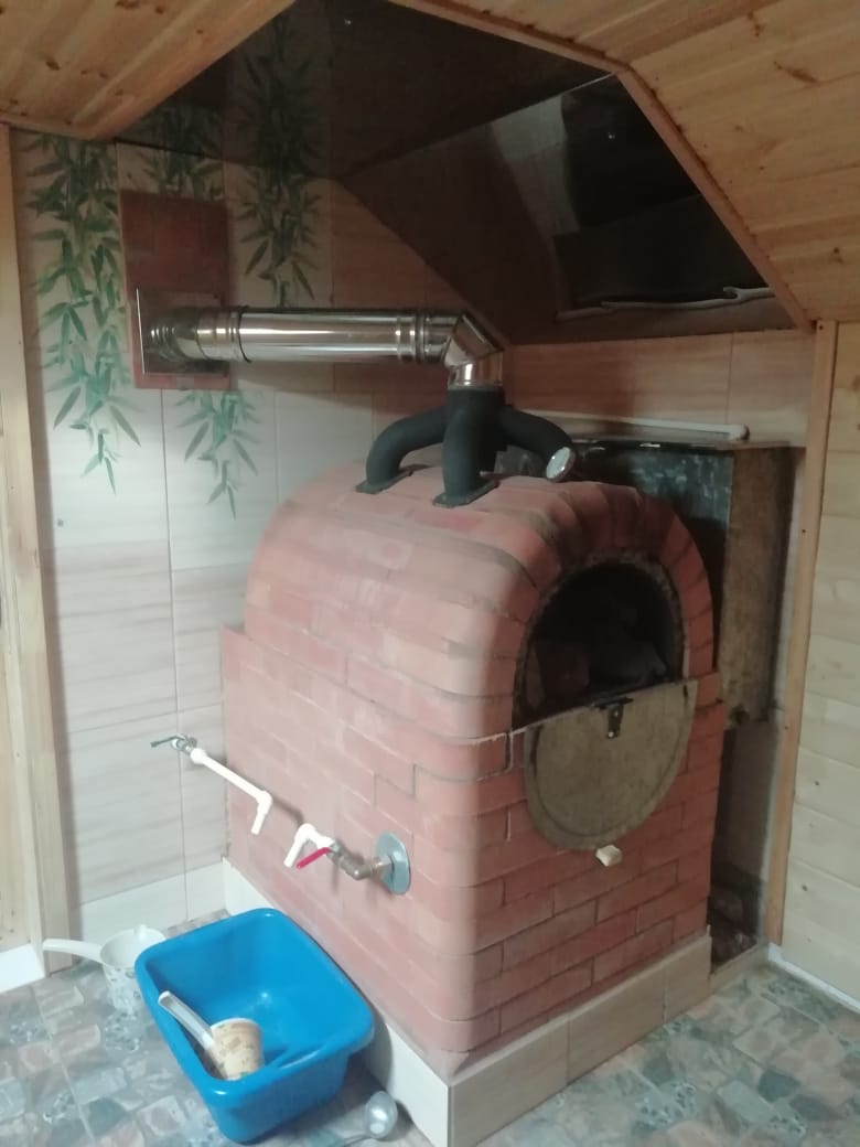 Печушка)). Она на самом деле маленькая. Всё почему то думают что она большая. Ещё она подходит для низких бань. Там ещё два ряда лишнего выложил, теперь жалею.... Один ряд внизу, и ряд между топкой и трубой можно убрать.