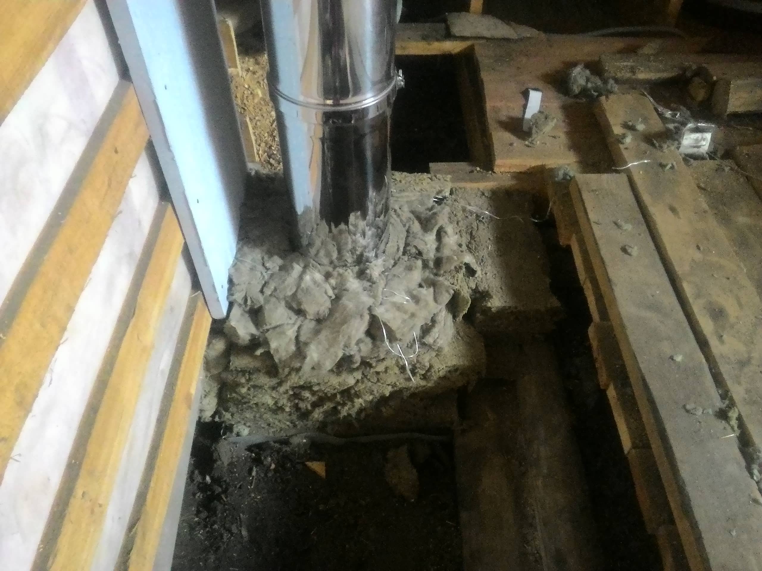 Получается такая картина. Сендвичь труба затем 10мм суперсил+30мм силикатум + 60мм базальт это в самом узком месте но и там деревянного перекрытие доска 25мм в потолке а остальное засыпка то ли земля с песком то ли торф с песком короче весь чердак засыпан этой смесью. А в толстой части сендвич+суперсил 10 мм+базальт 60мм+силикат 30мм +базальт 60мм как то так. Я считаю что такие вопросы обязательно нужно поднимать и обсуждать не всегда можно сделать все по снипам.....Здесь нет ни раскрытие фишек печника которые он сам годами нарабатывал здесь помощь на своих примерах и с помощью сообщества решения возникших проблем для это го и эта платформа и существует (форум). Любой из выше написавших может столкнутся с таким вопросом заглянет а вот и решение уже есть. А вот такого решения как на фото я даже и не мог представить )))))))