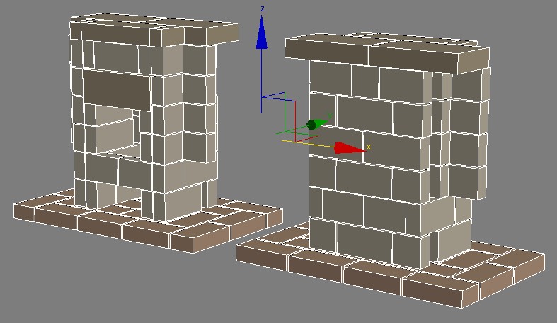 | Ну, или спилы по внешним кирпичам и клиновидные на середину. |