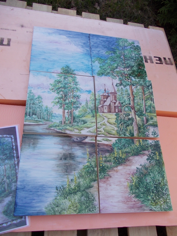 Всем привет на майские праздники поставил керамическое панно в каминопечь от фирмы город Кимры Изразцовые печи www.pechy.ru Само панно пришло в посылке все упаковано в виде 3 см керамической плитки как бы изразец без румпы рисунок храм на холме рисовала художница ,также дополнительно была сделано рамка фигурная .