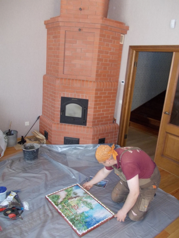 Вот конечный вариант печь была год в эксплуатации обогрев 40 квм большое спасибо заказчику за предоставленный опыт с монтажем и ребятам художникам -керамистам за картину шедевр .