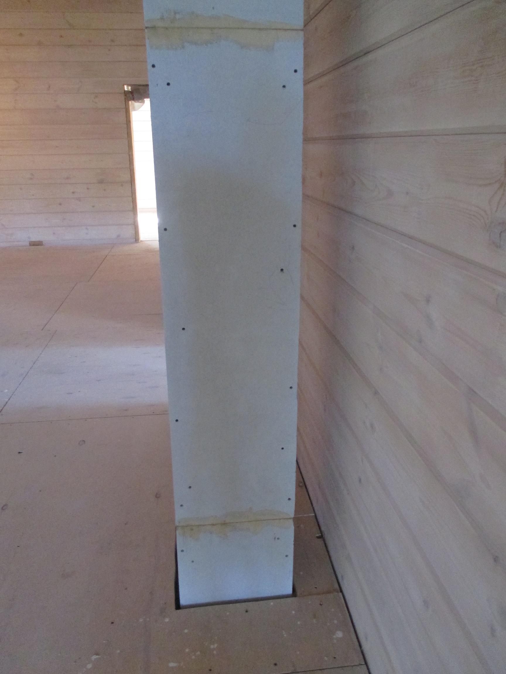 Через межэтажное перекрытие проходит сэндвич труба 180х280, вокруг нее короб из суперизола 50мм на него изразцовая плитка 25мм на термоклей 5мм. на втром этаже короб из того же суперизола под штукатурку.