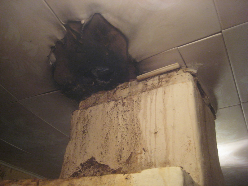 А хотите увидеть, при каких на самом деле расстояниях возникают пожары? См. фото. От дыма было см 4-5, причём сгораемая конструкция была вмурована в кладку трубы. Печь проработала не знаю, сколько лет, много, она уже сама почти пришла в негодность. Пожар возник по причине проседания пола под печью из-за прогнивших деревянных опорных столбов и следовательно трещины в трубе. Что ж вы думаете прописали пожарные после того, как всё потушили? Сделать 38 см от дыма? 50? Нет! Велели просто обойти энту балку, чтобы получилось полкирпича от дыма, как почти у всех в нашем р-не и сделать боров такой же, как и был. Хозяева позвали меня, я сделал согласно инструкции пожарных, только вместо 12 сделал см 15-20, под борова сделал не в 1 ряд, а в 2 и кой-где что-то положил типа асбеста и железа.