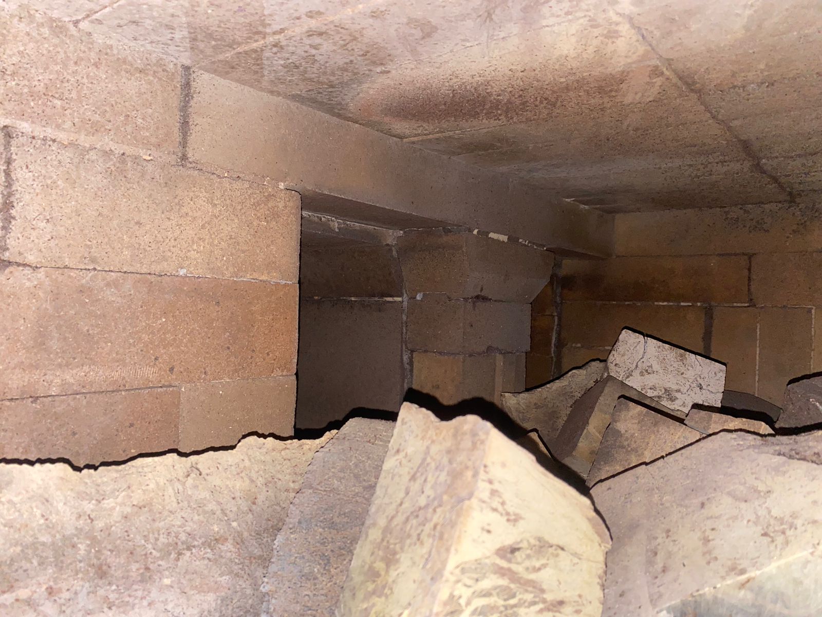 За полтора года менее половины сантиметра сажи на стенках ШАмотной футеровки.