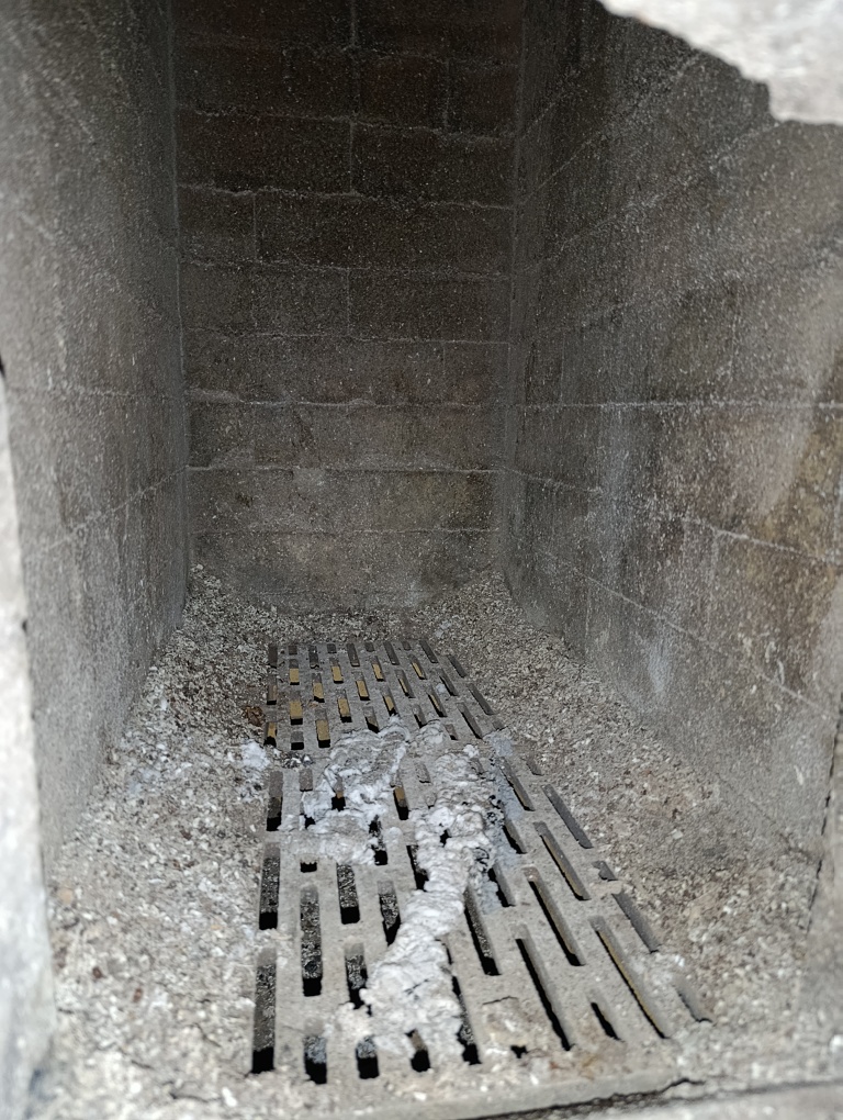 Топочная камера после 5-ти часов "работы на форсаже" и выстаивания каменки, в процессе остывания и в ожидании пылесоса с циклоном.