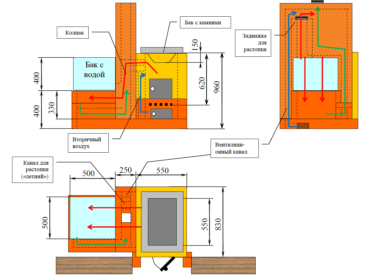 Наконец-то доехал до дачи. Всё померил. Вот чертёж. Там практически всё сложено на ребро (кроме топливника). Вент. канал я во время топки закрываю.