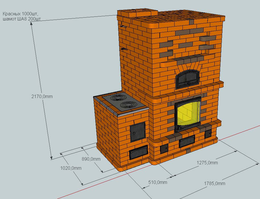 Буду класть печку по проекту уважаемого Владимира Солина. В связи с этим нужно закупить всю фурнитуру для нее. Общей вид печи будет как на картинке. А непосредственно нужно: