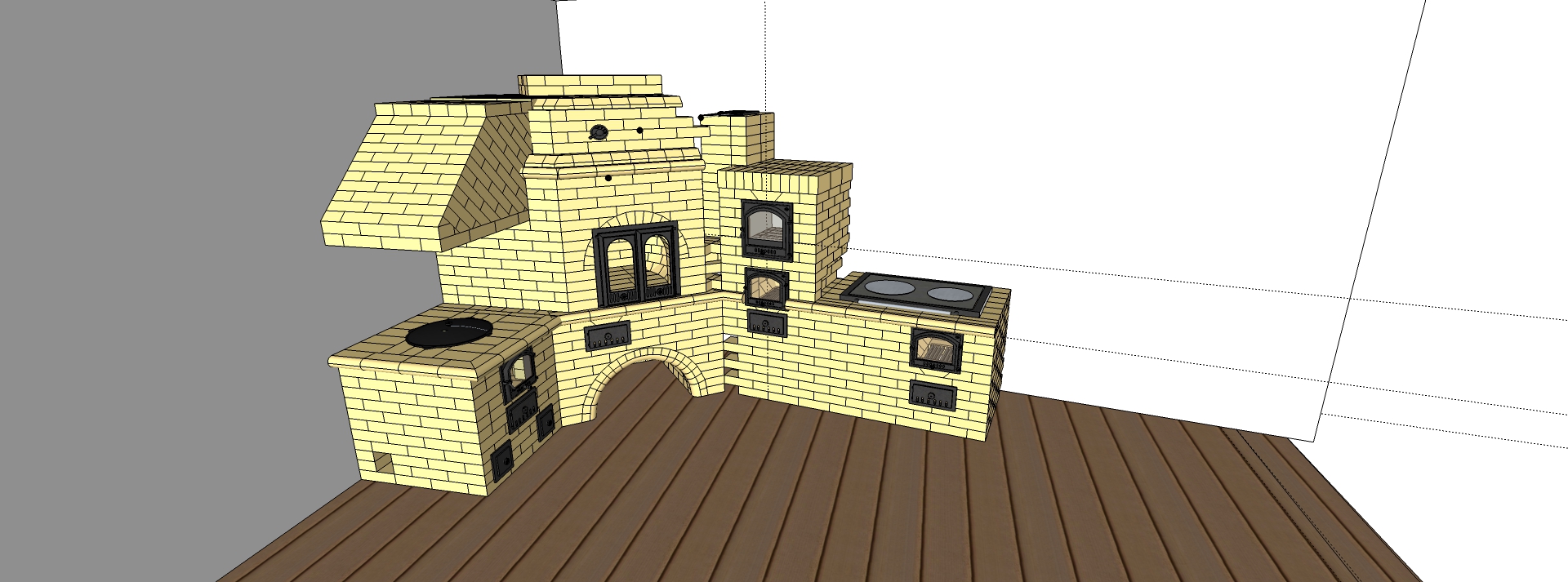 В открытом доступе нашел проекты печи казана и мангала (огромное спасибо авторам) и пытаюсь их соединить под требуемым углом