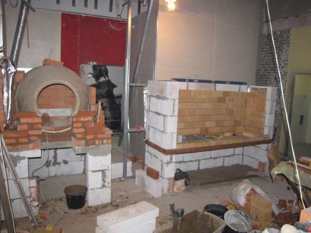 Продолжаем выпилили проем в тандыре для того чтоб лепешечнику было удобно работать.(тандыр глиняный) обкладываем. мангал то же подрос. Сложности в том что работать приходится ночью после 23 часов. Поскольку все заведения вокруг уже давно работают и шуметь днем не разрешают.