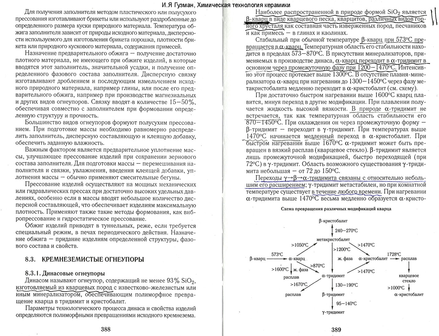 А если обжиг ведется "по-немецки" ниже 1470град /или с минерализаторами по Грум-Гржимайло/, то кристобалит не образуется вообще, спекание плохое, кирпич не прочный.